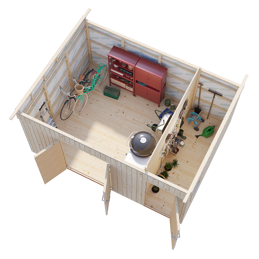 Förrådet är obehandlat och måste grundoljas, grund- och täckmålas innan användning. Levereras i byggsatser som du själv monterar med hjälp av utförliga monteringsanvisningar.