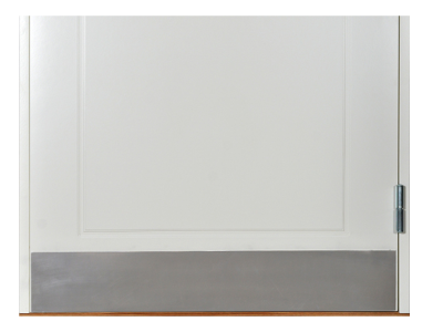 En sparkplåt sitter längst ned på dörren och skyddar dörrens mest utsatta del. Sparkplåten finns i mässing eller rostfritt stål.