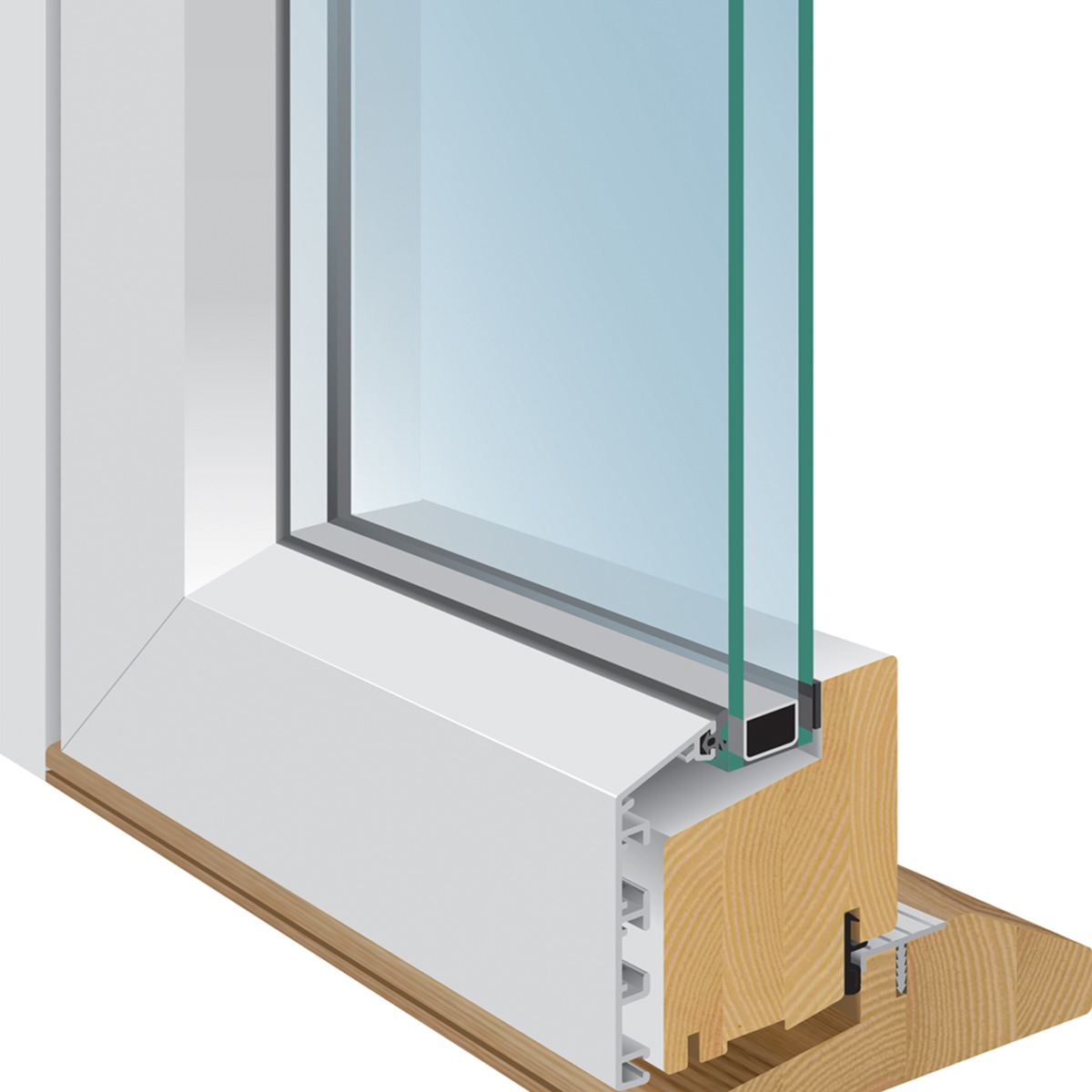 Våra aluminiumfönster har en trästomme som beklätts med aluminium utvändigt vilket ger ett mycket bra skydd mot fukt och solstrålning på utsidan och en genuin träkänsla på insidan.