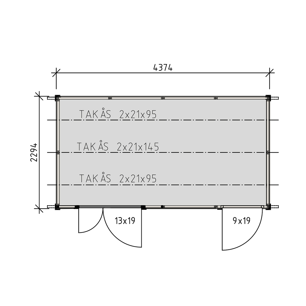 Dalstorp från Vibostugan är ett rejält förråd med plats för både gräsklippare och trädgårdsmöbler. Två ingångar ger dig möjlighet att dela upp och göra två förråd. Den ena dörren är extra bred för att du lätt ska få in de större trädgårdsredskapen.