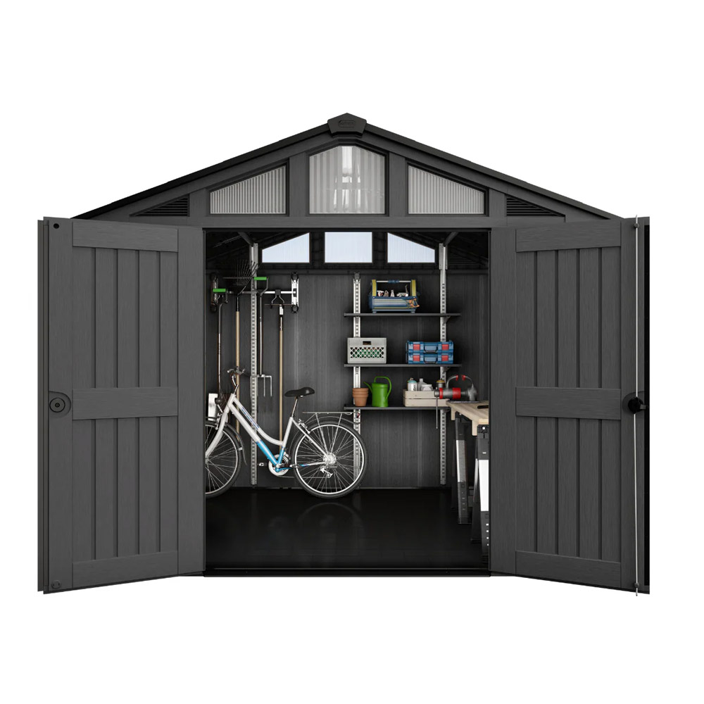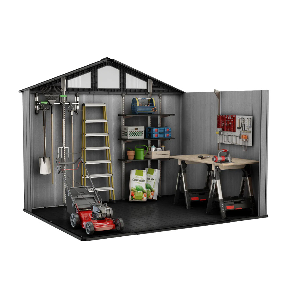 Ge din trädgård ett lyft med Keter Stronghold, ett slitstarkt förråd som kombinerar stil, styrka och bekvämlighet. Här finns gott om plats för allt från cyklar och trädgårdsredskap till grill, gräsklippare och större maskiner.