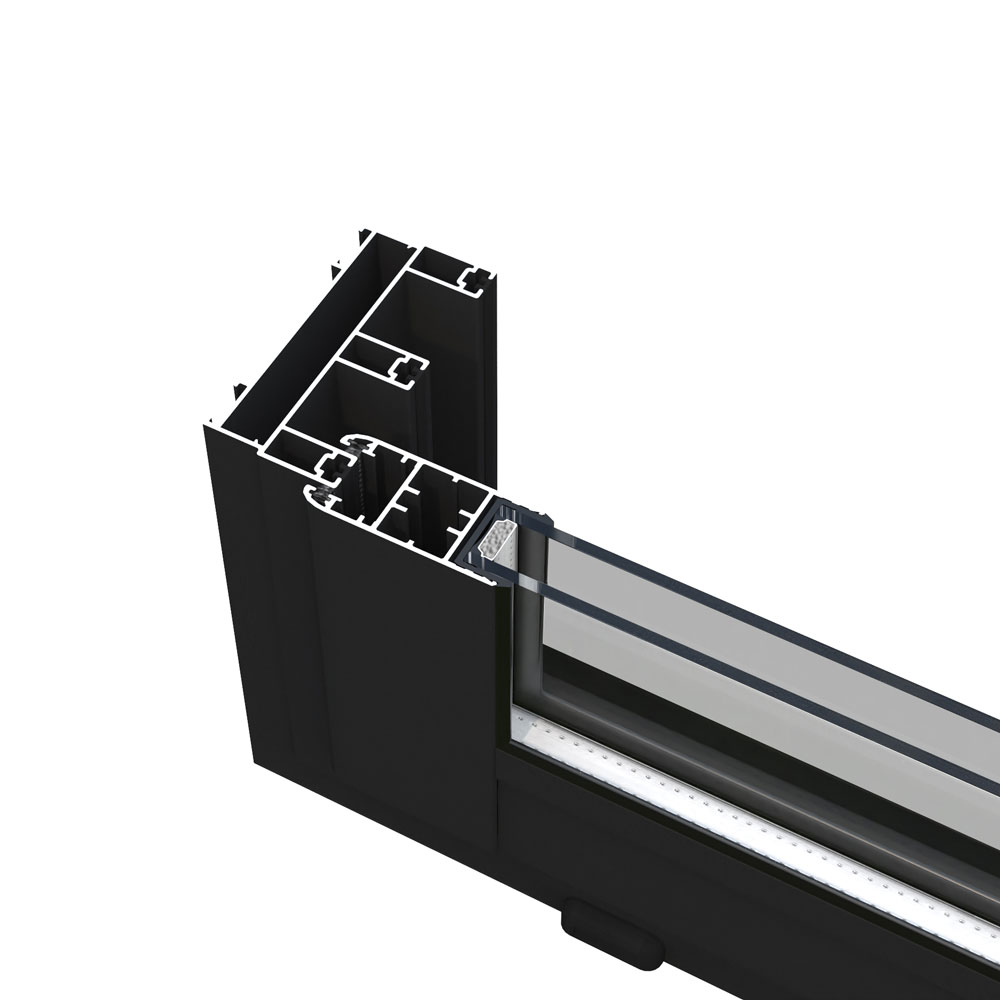 Slide Plus-modellen är utrustad med Alu DG, vilket innebär skjutdörrar i aluminium med dubbelglasat härdat isolerglas för bättre komfort, ljudreduktion och energiprestanda. Dörröppningarnas mått är 73×186 cm, 87×185 cm och 169×185 cm. Konstruktionen kan vid behov byggas spegelvänt.