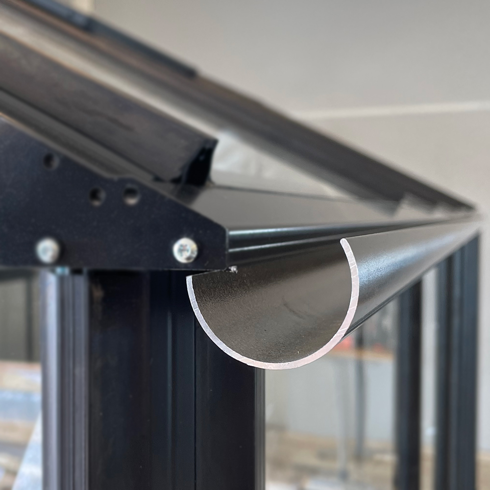 En praktisk lösning för att leda bort eller samla upp regnvatten från ditt växthus.