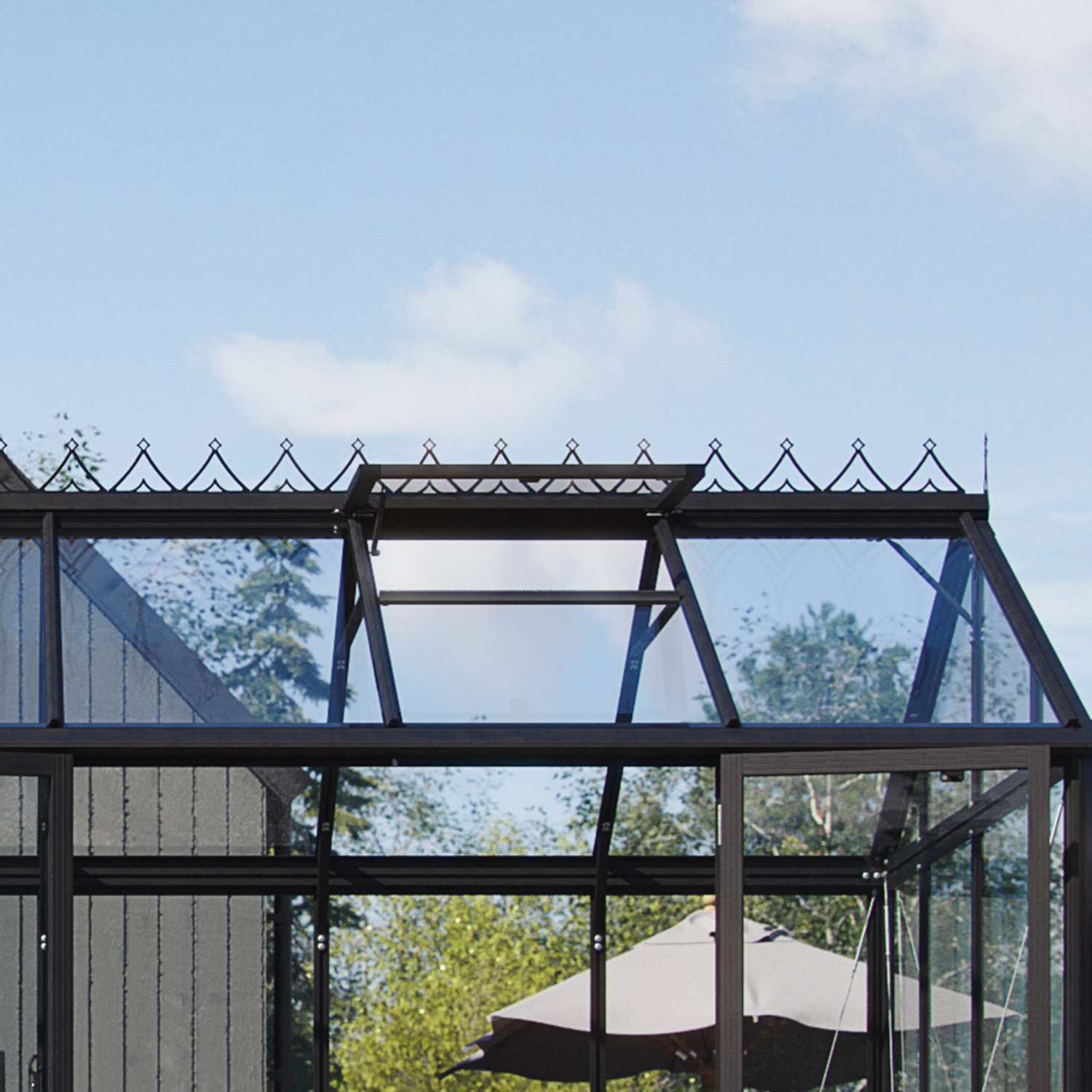 Ett extra takfönster hjälper dig att snabbt vädra ut överskottsvärme när solen ligger på. Det bidrar till ett stabilare klimat i växthuset och ger bättre förutsättningar för dina växter att trivas.