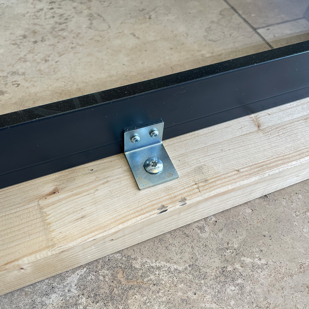 Kittet innehåller tillräckligt många skruvar, till växthusets sockel, och vinkeljärn oavsett storlek på ditt växthus. Du fäster vinkeljärnen på sockelns insida med de skruvar som följer med och därefter ner i det underlag du har valt att sätta ditt växthus på.